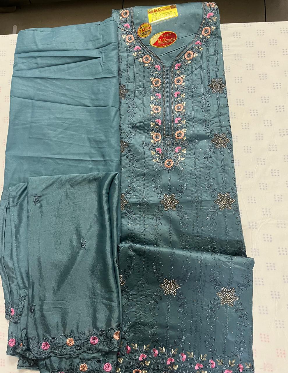 beautiful design suit with high quality fabric which is blue in colour