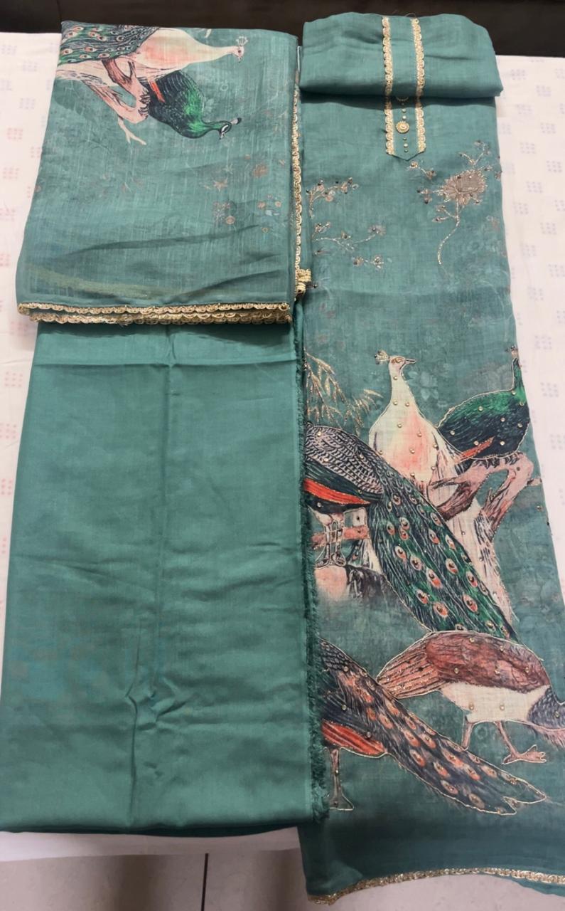 beautiful design unstiched suit with high quality fabric which is blue in colour